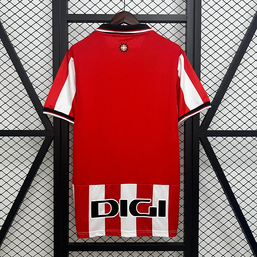 Viste los colores de la historia con la camiseta local del Athletic de Bilbao para la temporada 25/26. Esta prenda clásica, confeccionada con materiales de alta calidad, rinde homenaje a la esencia del club con un diseño puro y atemporal.
