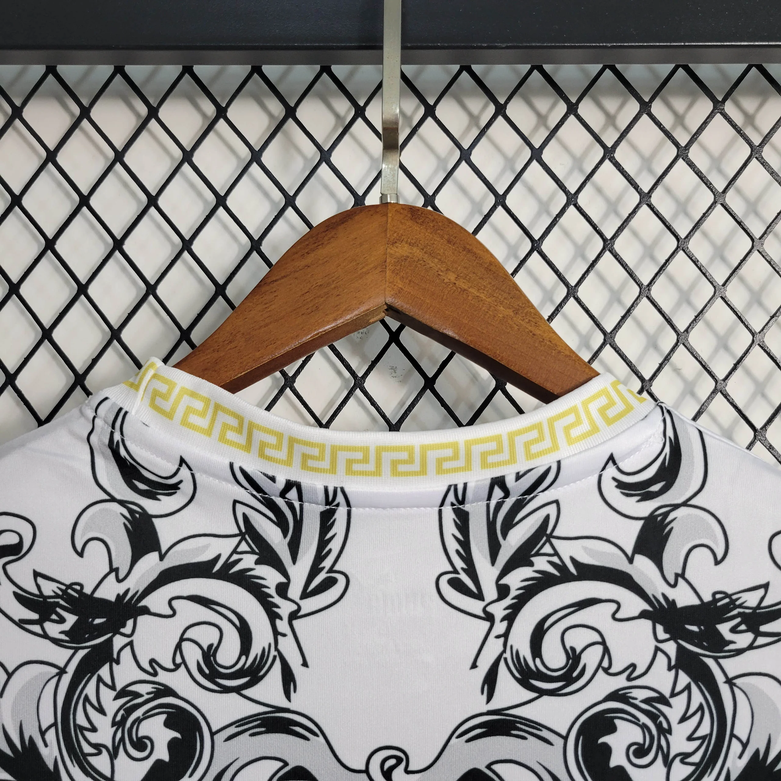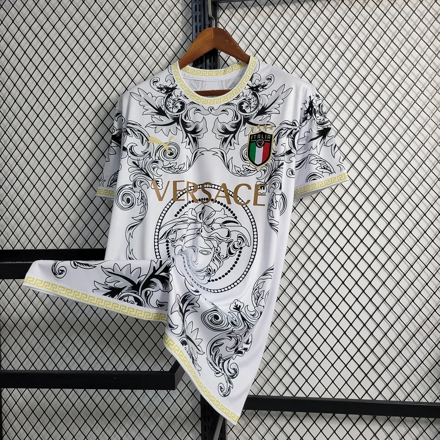 Viste los colores de la historia con la camiseta de edición especial de la selección de Italia X Versace. Esta prenda exclusiva, confeccionada con materiales de alta calidad y un tejido técnico avanzado, ofrece mayor ligereza, flexibilidad y una transpirabilidad superior.