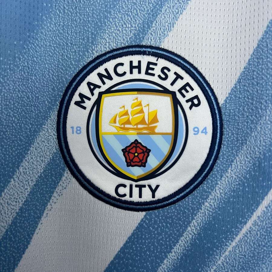 Viste los colores de la historia con la camiseta local del Manchester City de la temporada 25/26. Esta prenda clásica, confeccionada con materiales de alta calidad, rinde homenaje a la esencia del club con un diseño puro y atemporal.