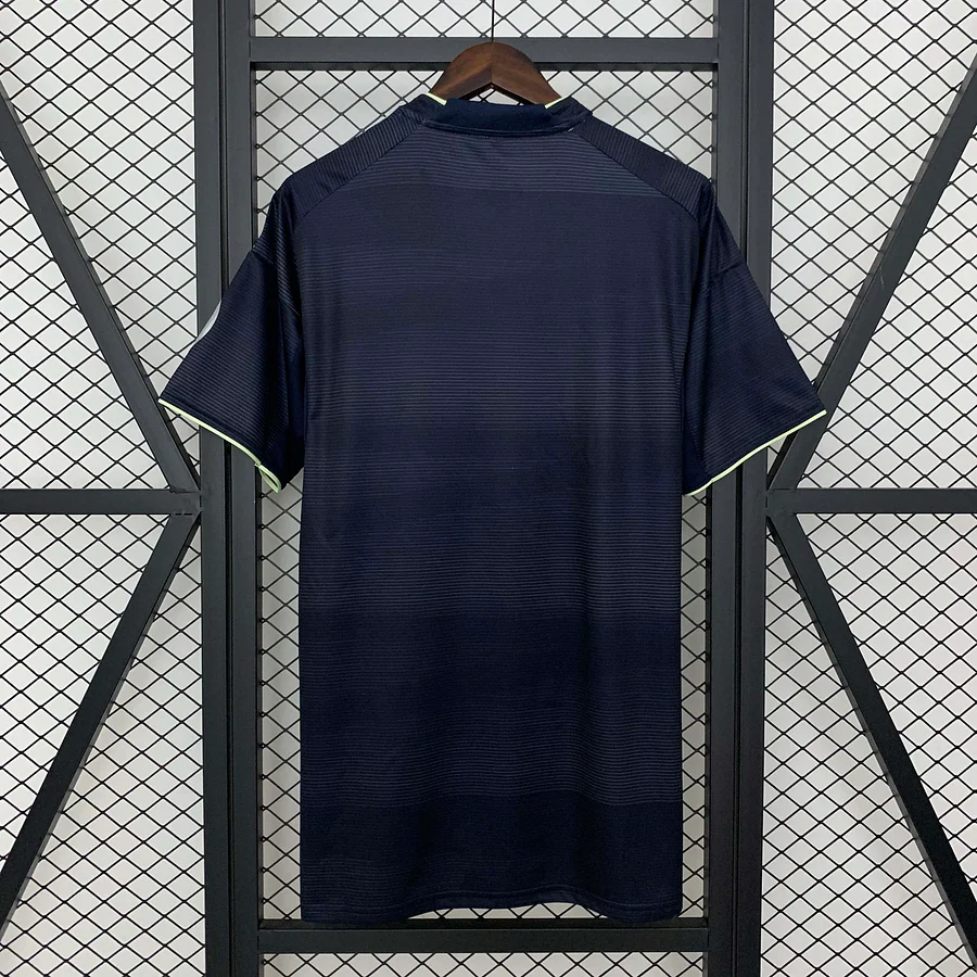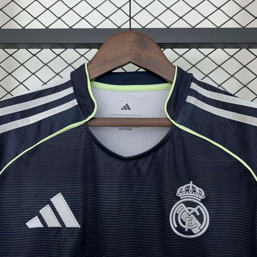 Viste los colores de la historia con la camiseta de la segunda equipación del Real Madrid para la temporada 25/26. Esta prenda clásica, confeccionada con materiales de alta calidad, rinde homenaje a la esencia del club con un diseño puro y atemporal.